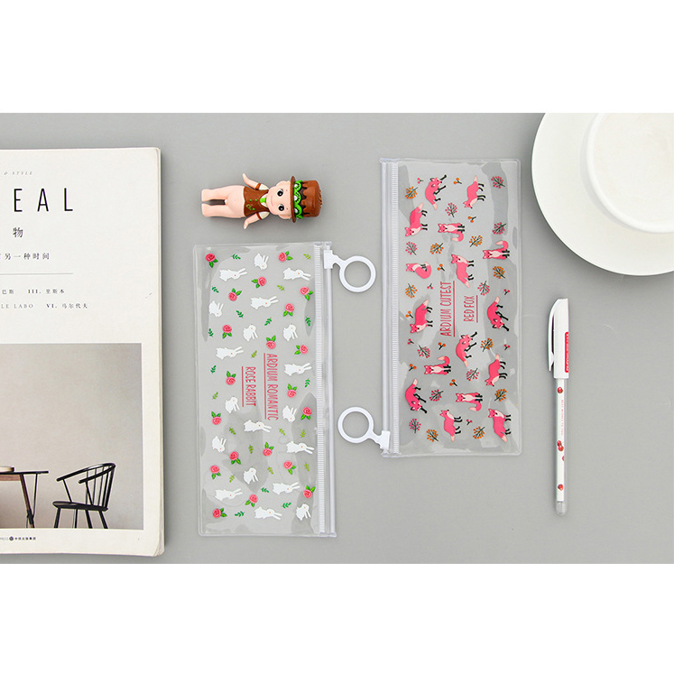 Woodland Animals Foxes Cherry Blossom Flowers Floral See Through Pencil Case