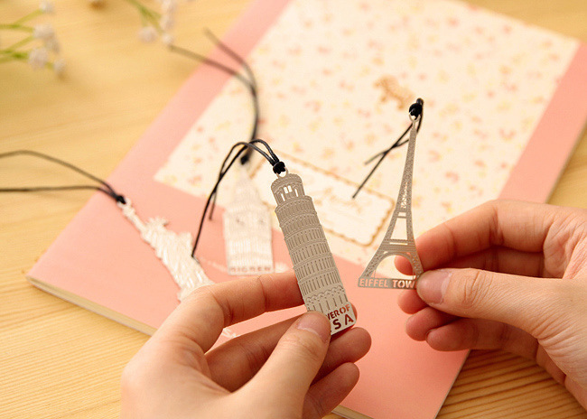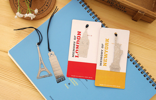 A must-have collection of world famous landmarks silver metal bookmarks for holiday makers and reading lovers.